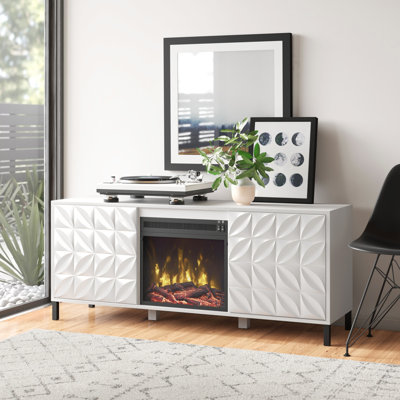 This fireplace console tv stand is exactly what i needed fir this space! Check out our fireplace tv stand selection for the very best in unique or custom, handmade pieces from our living room furniture shops. Choose from contactless same day delivery, drive up and more. With white being a less obtrusive color, you'd be able to better appreciate the raging flames, the soot, and the burning logs. Features two faux drawer side cabinet doors with one adjustable shelf each.